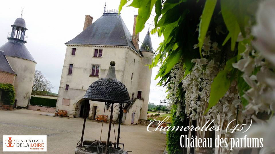 Château de Chamerolles (B) : le château des parfums... à la lisière de la forêt d'Orléans, cette bâtisse de 600 ans fut construite par Lancelot Ier du Lac. Son architecture évolue au fil du temps, avec les propriétaires successifs, malgré les saccages de la Révolution et des Guerres Mondiales. Entouré d'un parc, d'un plan d'eau et d'un jardin Renaissance, les extérieurs invitent les visiteurs à une balade olfactive parmi les 75 variétés de rosiers, puis le musée du parfum à l'intérieur du château.